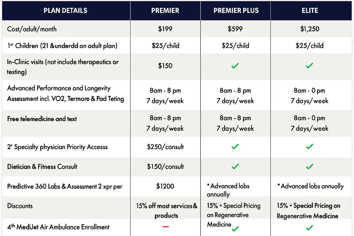 We have several membership tiers for our concierge medical services. Please call us to know the details of each of these.
